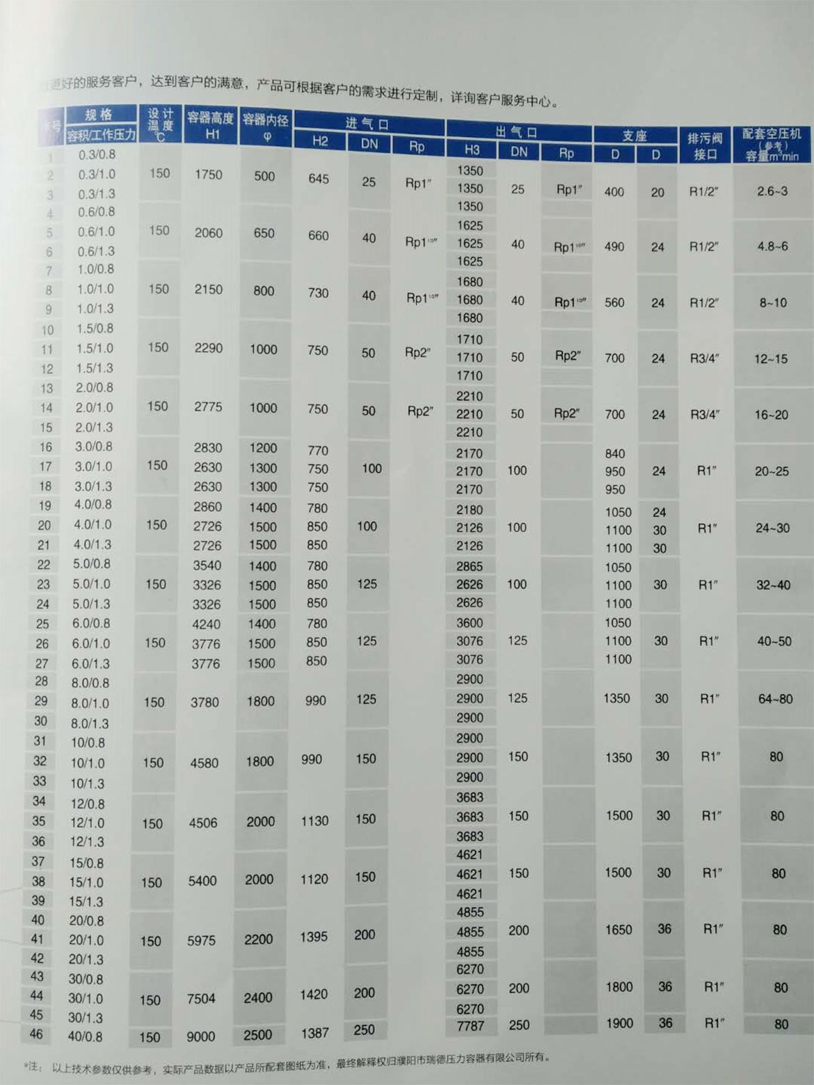 三、壓縮空氣儲氣罐選型: